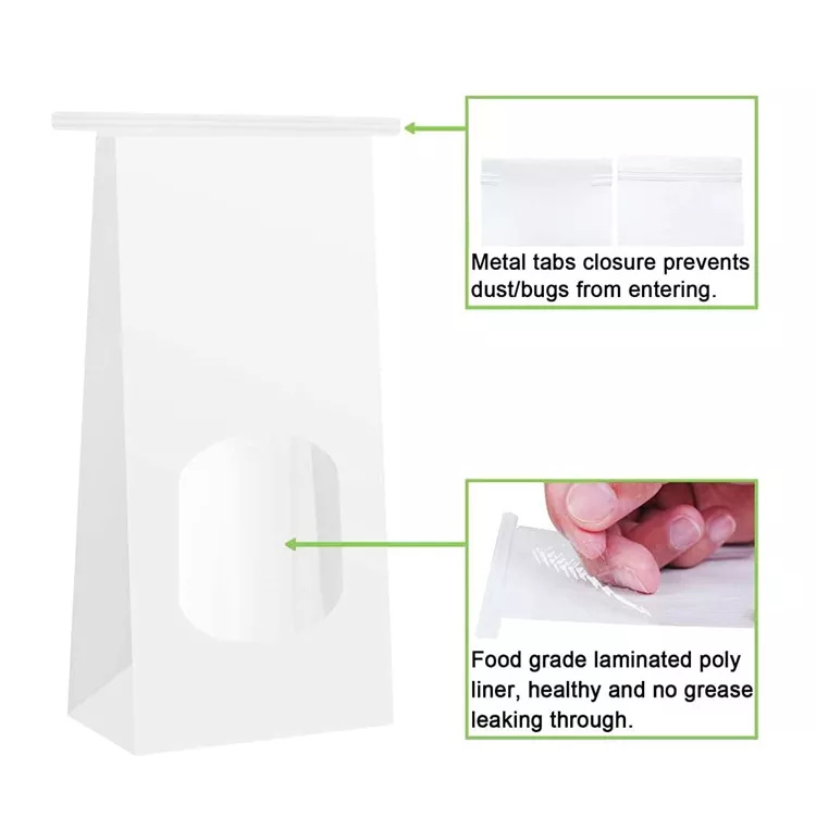 Custom White Tin Tie Paper Bag Food Packaging